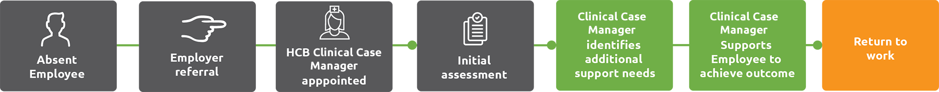 Our Early Intervention Clinical Case Manager service supports employees who experience health related difficulties which lead to an absence from the workplace. HCB’s Clinical Case Manager works with both the employer and employee to meet the individuals’ needs and, when the time is right, plan a sustainable return to work.